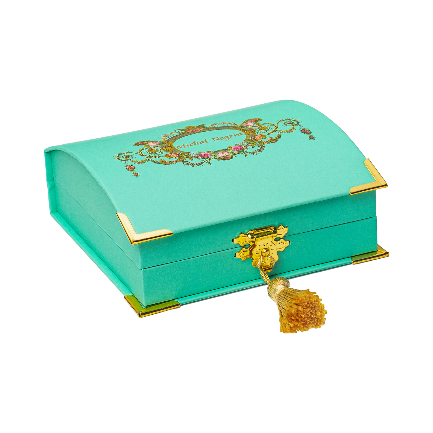 שרשרת ותיליון בציפוי רודיום , משובץ בעבודת יד קפדנית באבני זרקון שקופים בחיתוך מלבני ויוקרתי . השרשרת, בסגנון תכשיטי ווינטג' המזוהה מאד עם מיכל נגרין, היא פתרון מושלם למתנה לאישה, מתנה ליום נישואין או מתנה ליום ההולדת.