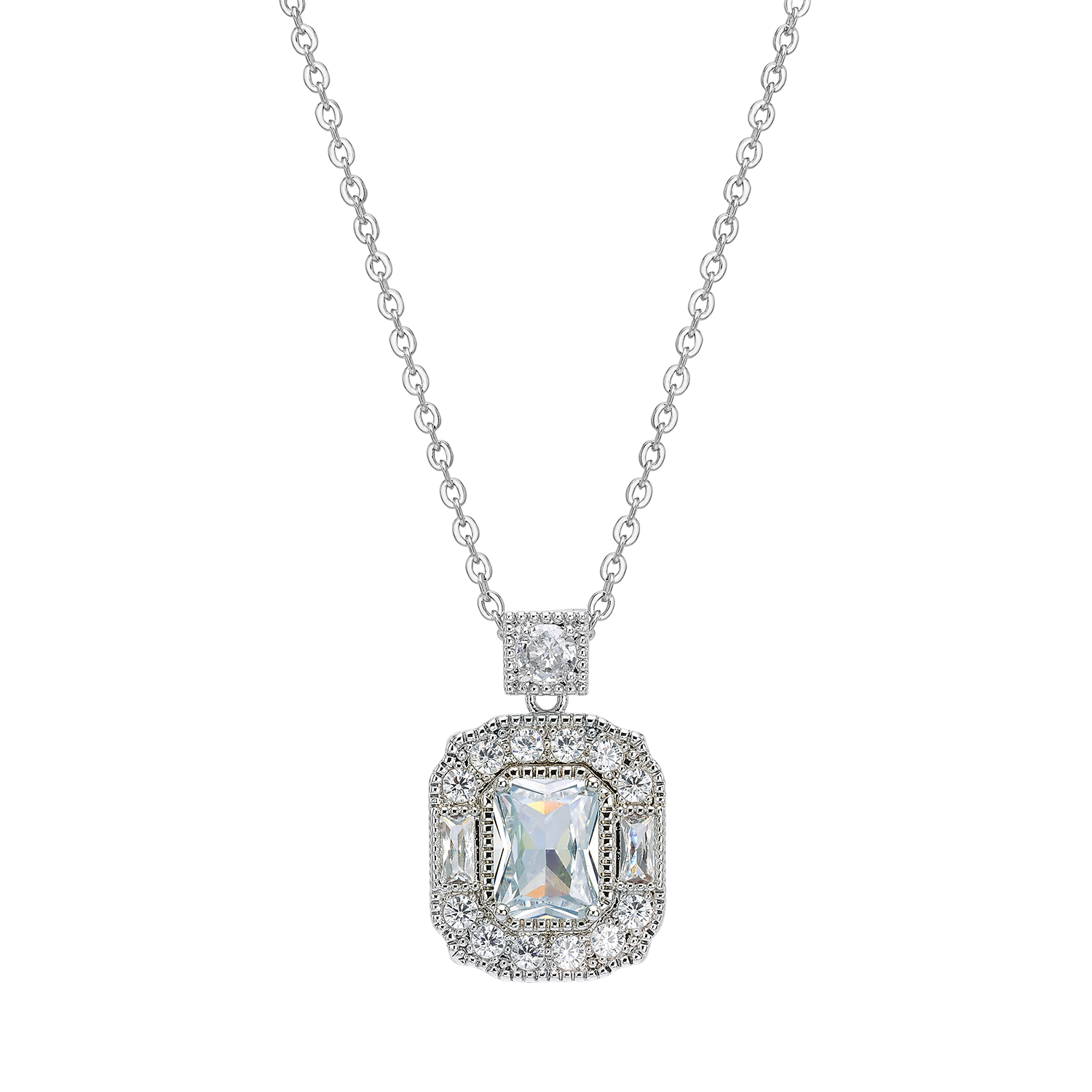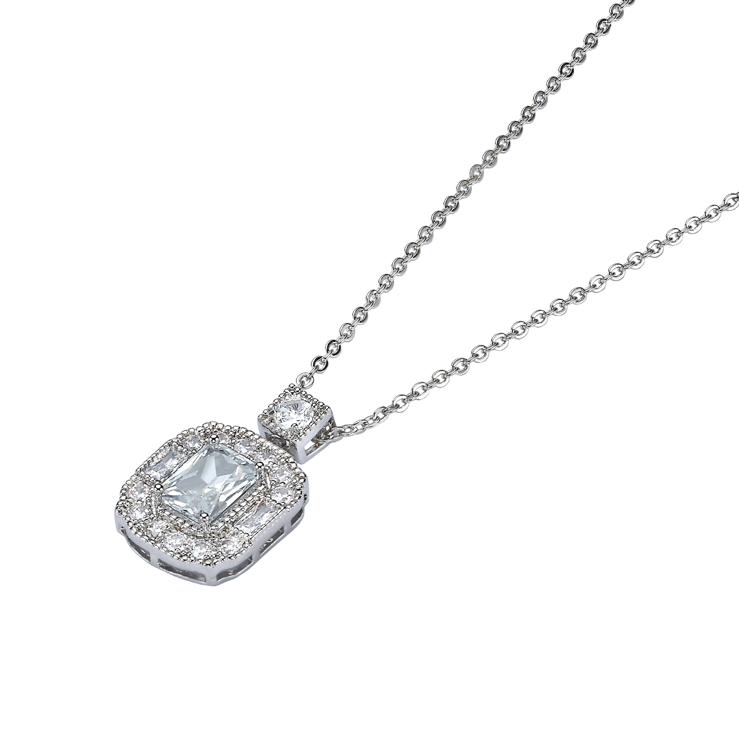 שרשרת בציפוי רודיום עם תיליון מלבני בשיבוץ זרקונים Volver